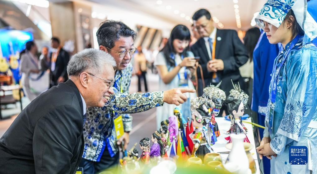 8月29日,參會(huì )嘉賓在交流周活動(dòng)上參觀(guān)工藝作品。
