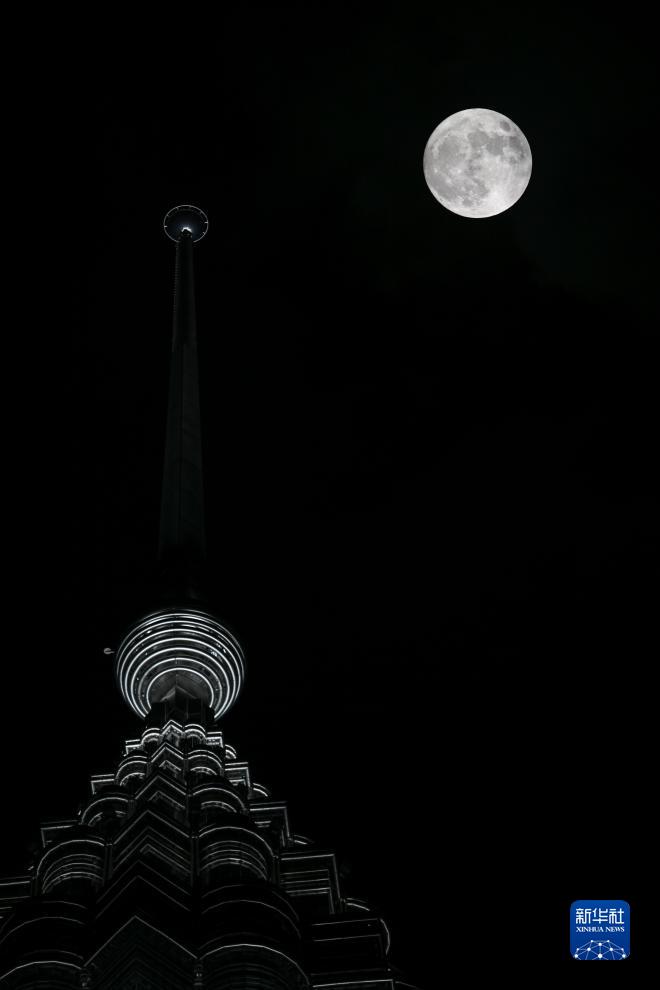 8月30日,“超級月亮”在馬來(lái)西亞吉隆坡雙子塔上空升起。