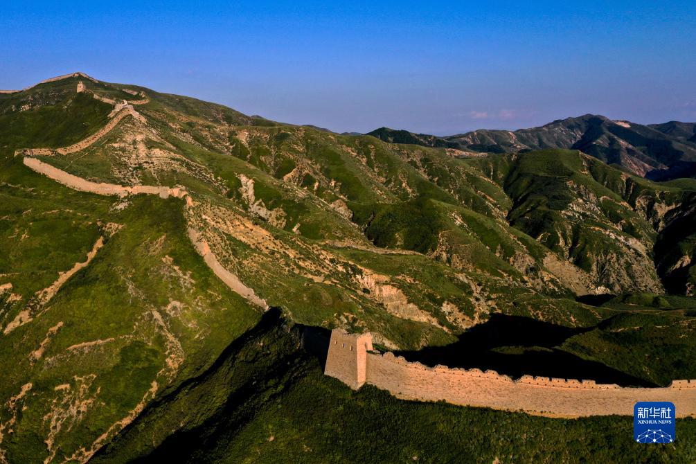 這是8月30日拍攝的新廣武—白草口段長(cháng)城(無(wú)人機照片)。