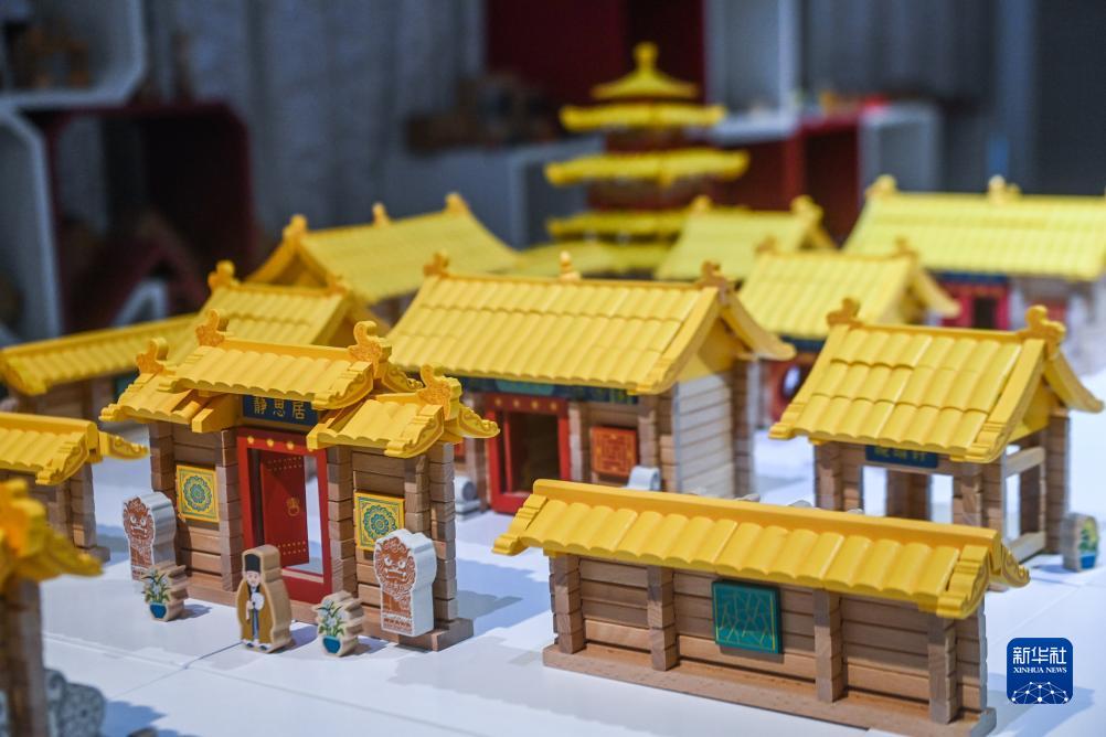 8月31日,位于云和縣的浙江和信玩具集團有限公司展廳內展示著(zhù)國潮榫卯積木玩具。
