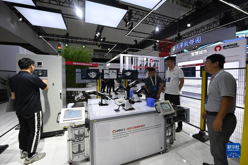 8月31日,參會(huì )人員在第二十五屆中國國際軟件博覽會(huì )軟件成果展上演示視覺(jué)分揀螺母系統。