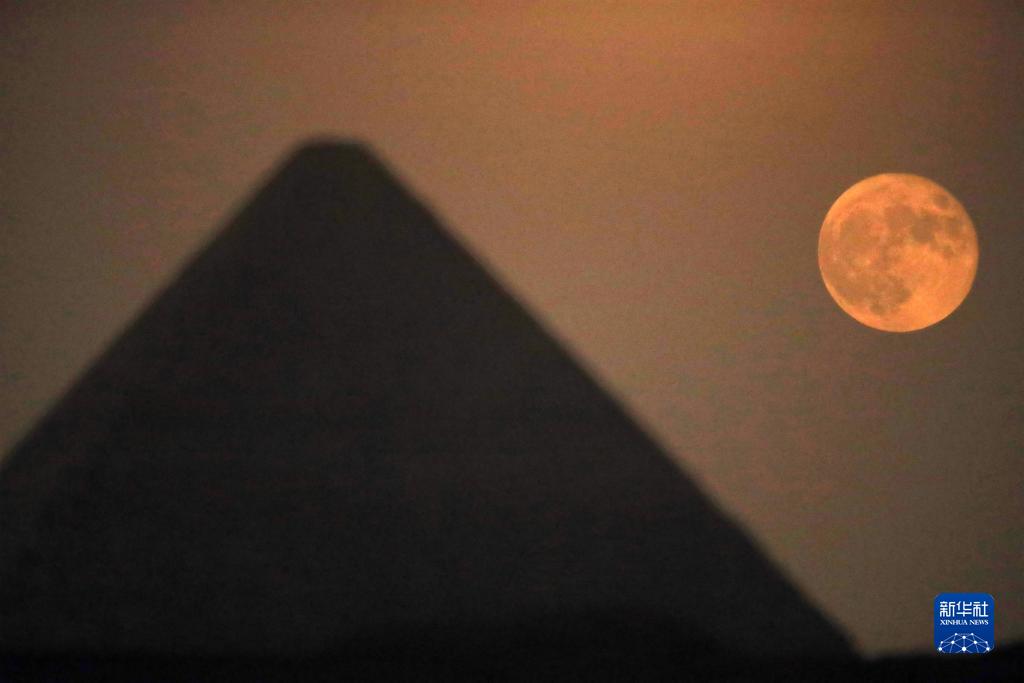這是8月31日在埃及吉薩的胡夫金字塔旁拍攝的“超級月亮”。