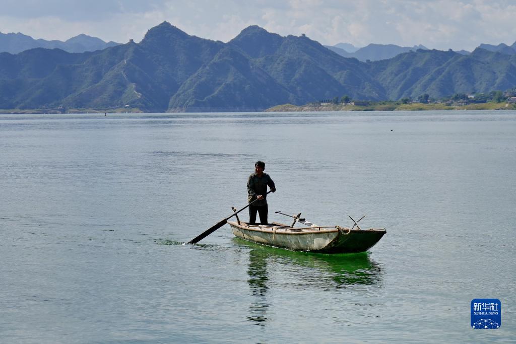 8月30日,衡丙三在潘家口水庫上劃船行駛,準備巡查長(cháng)城。