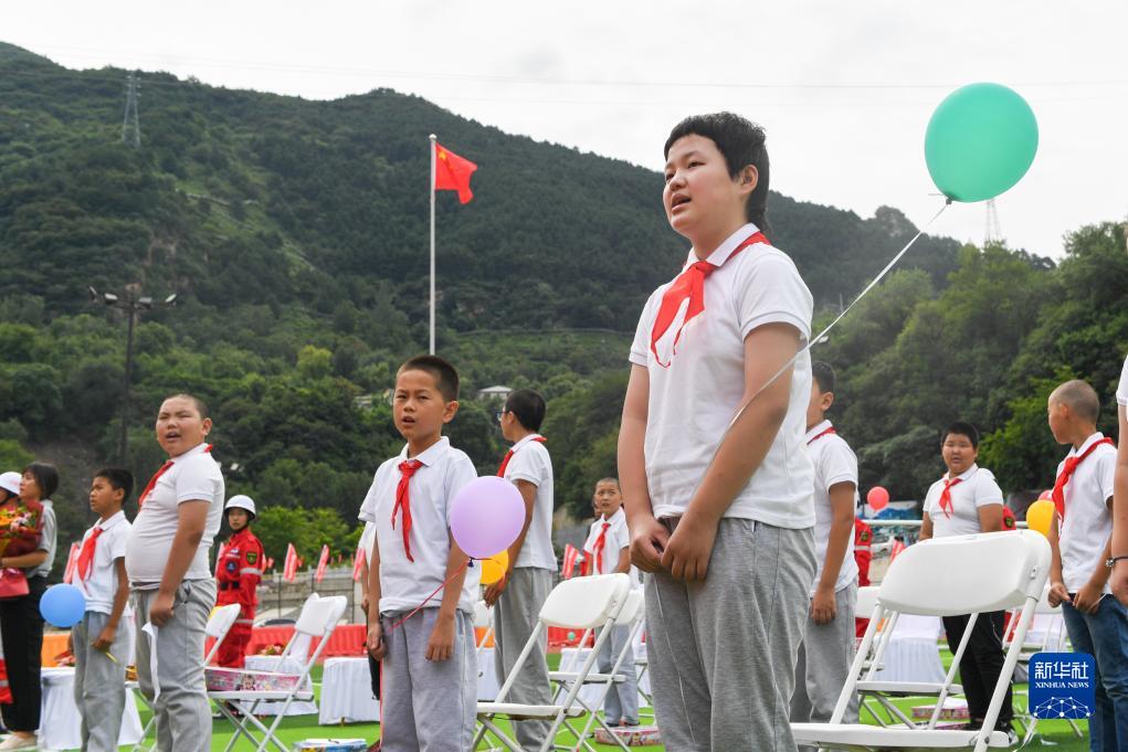 9月1日,在北京市房山區霞云嶺鄉霞云嶺中心小學(xué),學(xué)生在修繕一新的操場(chǎng)上參加開(kāi)學(xué)典禮。