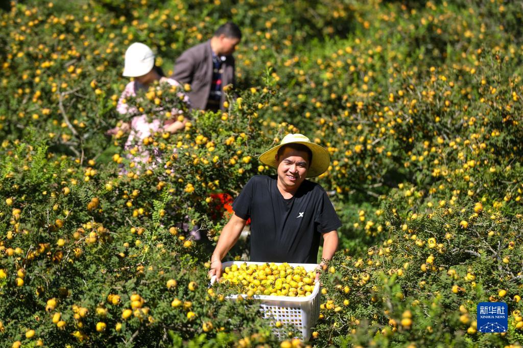 初秋時(shí)節,貴州省龍里縣的10.5萬(wàn)畝刺梨陸續進(jìn)入采收期,當地村民忙著(zhù)采摘、加工刺梨,供應市場(chǎng)。