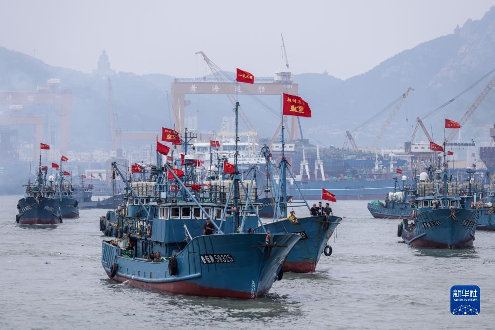 當日,為期四個(gè)月的黃渤海伏季休漁結束,所涉漁區迎來(lái)“開(kāi)?!?,各漁港碼頭千帆競發(fā),漁船出海進(jìn)行捕撈作業(yè)。
