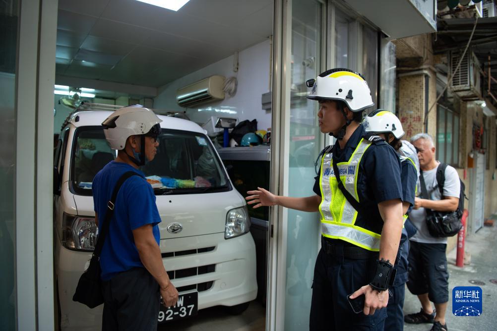 9月1日,澳門(mén)海關(guān)人員勸說(shuō)低洼地區人員疏散撤離。