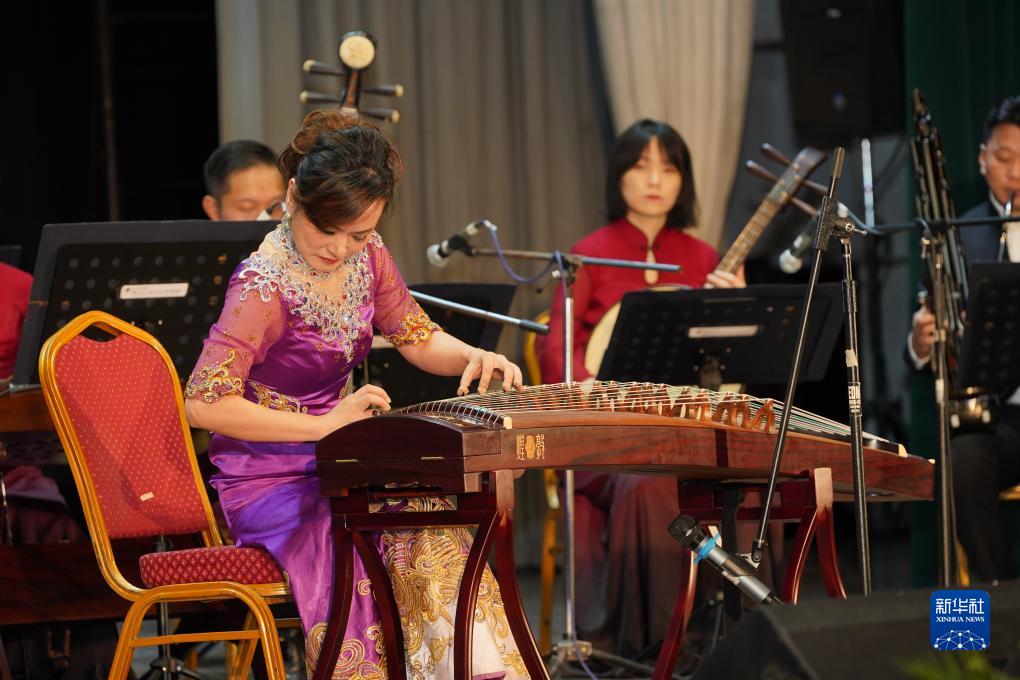 8月31日,演奏者在尼泊爾首都加德滿(mǎn)都的“絲路花語(yǔ)”中國民族音樂(lè )專(zhuān)場(chǎng)演出上奏樂(lè )。