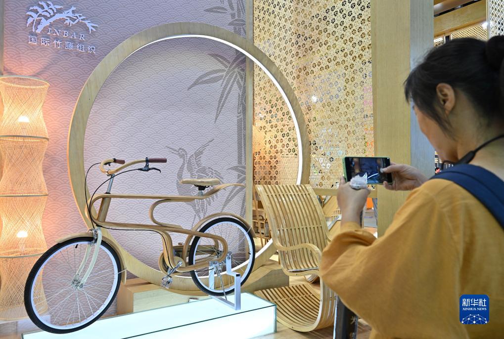 9月2日,觀(guān)眾在服貿會(huì )上拍攝竹制單車(chē)。