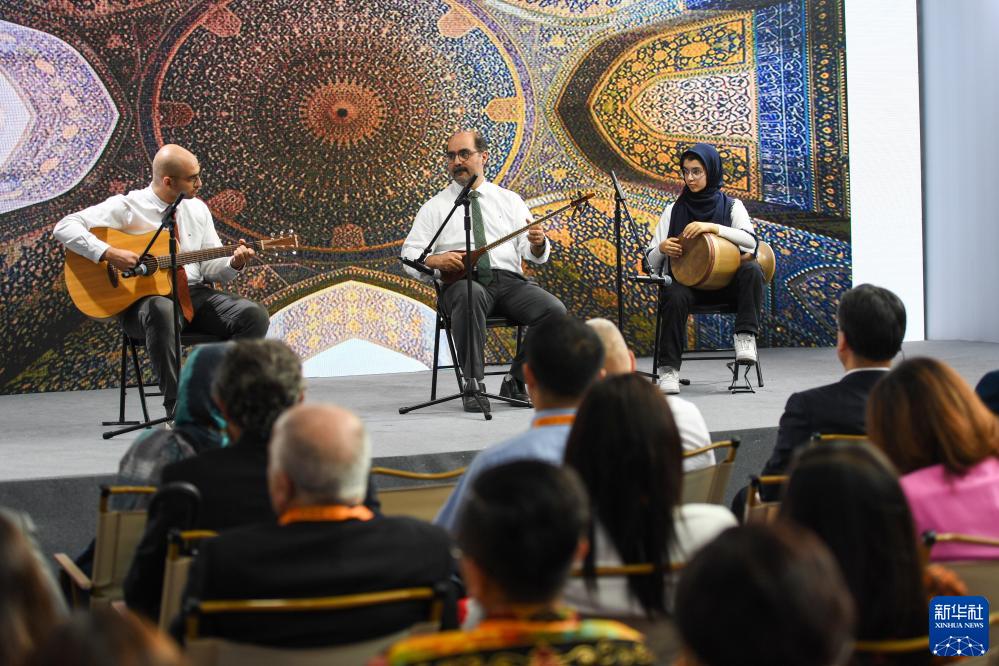 9月2日,在“一帶一路”沿線(xiàn)國家特色文化展示活動(dòng)開(kāi)幕式上,來(lái)自伊朗的樂(lè )隊表演節目。