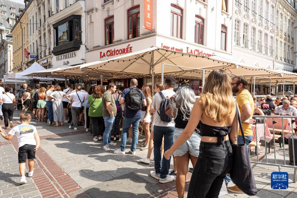 9月3日,在法國里爾舊貨市場(chǎng)上,人們在一家供應貽貝和薯條的餐廳外排隊等位。