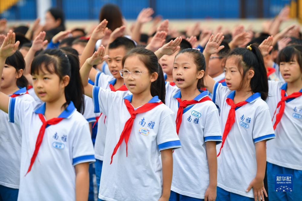 9月4日,在長(cháng)沙市南雅望城學(xué)校,學(xué)生參加升旗儀式。