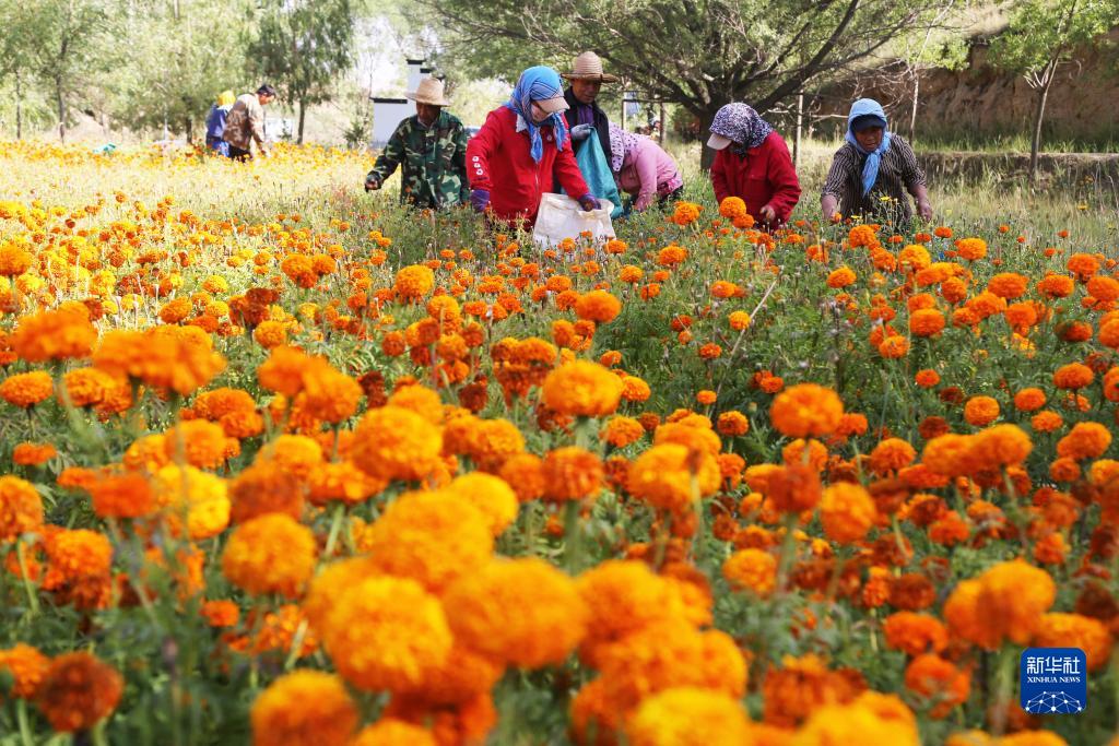 初秋時(shí)節,甘肅省定西市隴西縣4萬(wàn)畝萬(wàn)壽菊進(jìn)入采摘期,農民們趁著(zhù)晴好天氣采摘、裝車(chē)、出售,田間地頭一派忙碌景象。
