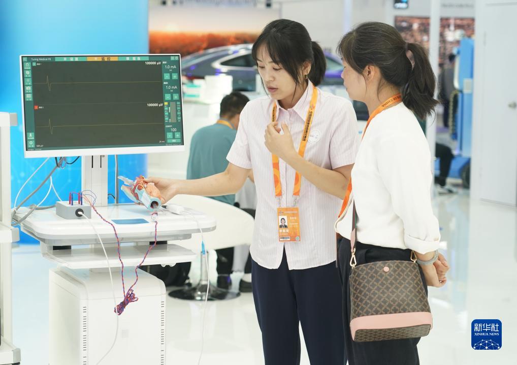 9月5日,參展商在服貿會(huì )首鋼園區介紹甲狀腺光電檢測平臺。