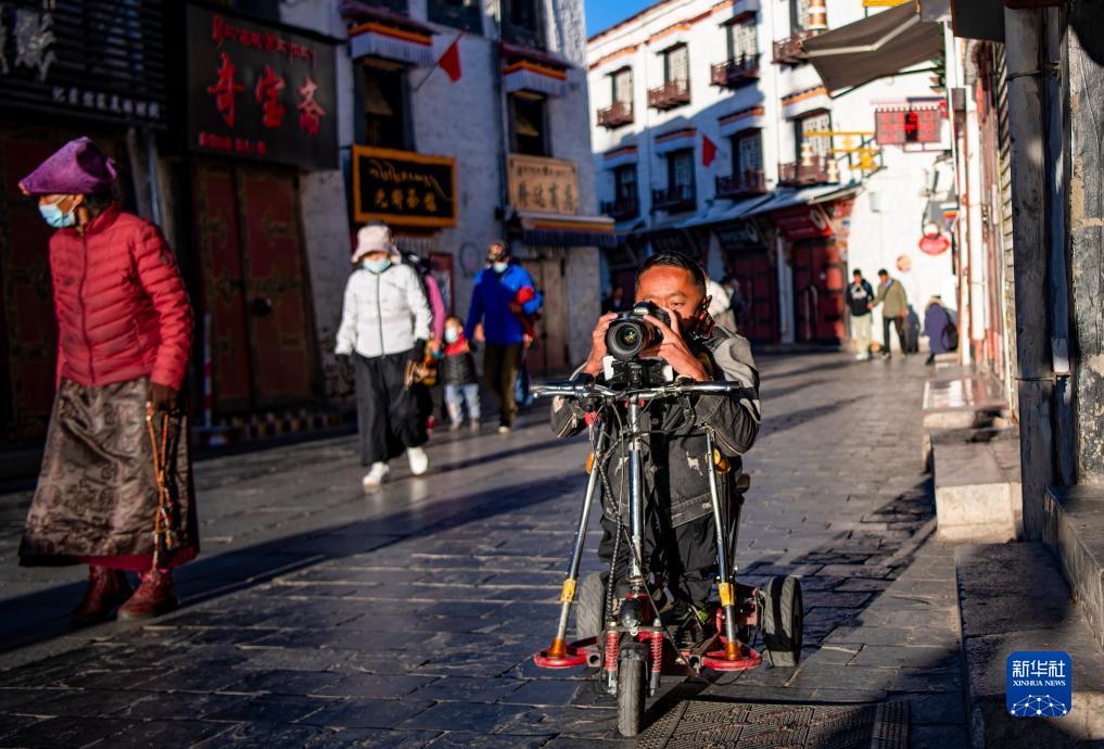 2017年,拉巴頓珠進(jìn)入拉薩市殘疾人托養中心生活,日子過(guò)得安定有保障,但他說(shuō):“我還年輕,我也有夢(mèng)想,我想靠自己的勞動(dòng)養活自己?!?托養中心為殘疾人開(kāi)設了多種課程,拉巴頓珠選擇了自己最感興趣的攝影和視頻制作。2021年,他離開(kāi)托養中心,找到肢體殘疾的創(chuàng )業(yè)者覺(jué)列,到其開(kāi)辦的文化傳播公司負責攝影和視頻制作,開(kāi)始了自食其力的生活。