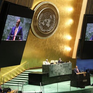 9月5日,在位于紐約的聯(lián)合國總部,第78屆聯(lián)合國大會(huì )主席丹尼斯·弗朗西斯在新一屆聯(lián)大第一次全會(huì )上致辭。