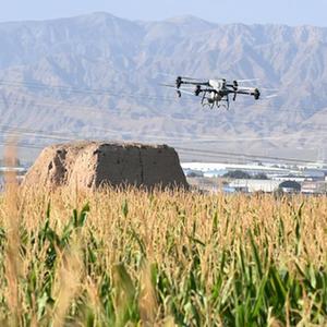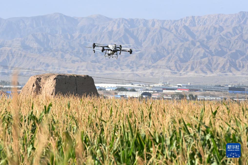 這是9月5日在山丹縣位奇鎮十里堡村拍攝的“一噴多促”作業(yè)現場(chǎng)。