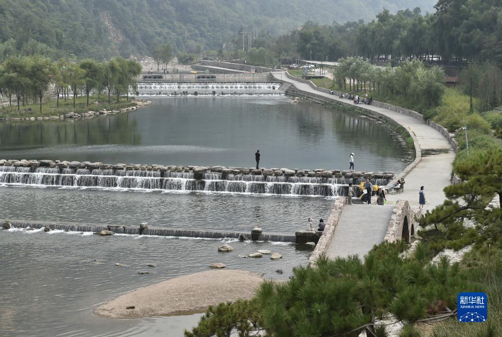 9月5日,游人在林州市石板巖鎮游覽。