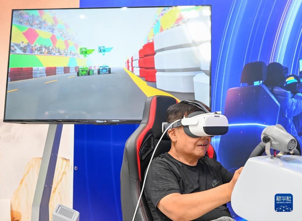 9月6日,觀(guān)眾在服貿會(huì )文旅服務(wù)專(zhuān)題展區體驗VR游戲。