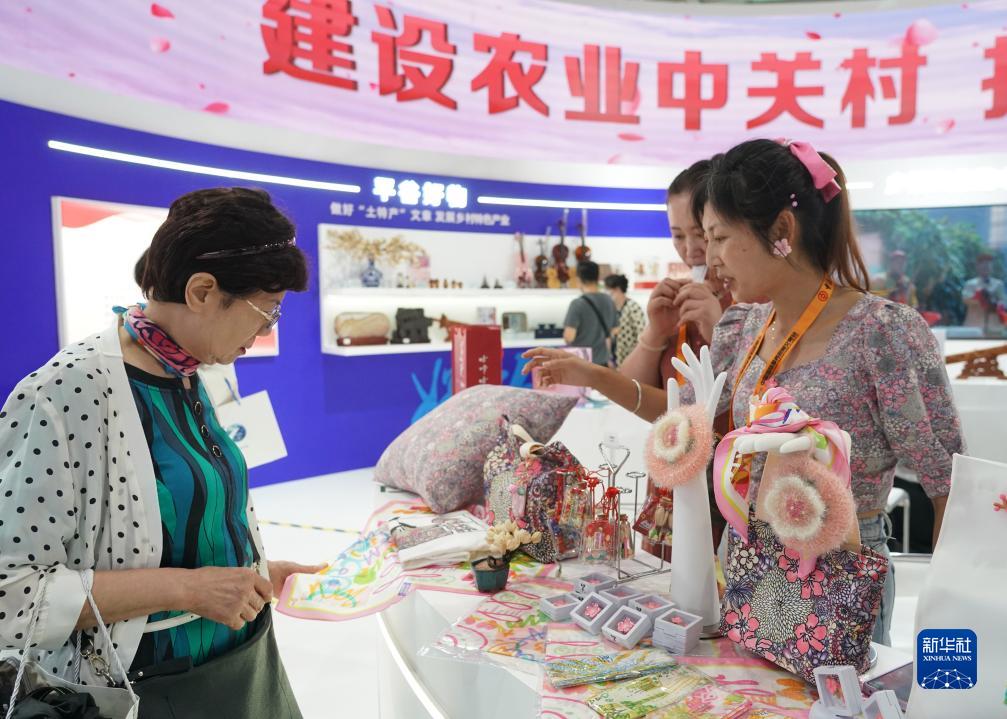 9月6日,觀(guān)眾在2023年服貿會(huì )文旅服務(wù)專(zhuān)題展區平谷展臺參觀(guān)。