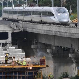 9月6日,中鐵四局施工人員在深江鐵路深圳段高峰水庫大橋上進(jìn)行主墩施工。