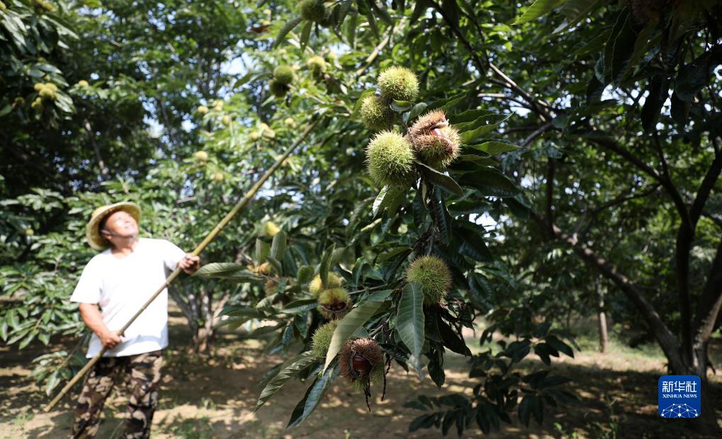 9月6日,山東省臨沂市郯城縣郯城街道呂港口村村民在采收板栗。