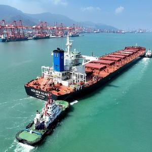 9月7日,在江蘇省連云港港集裝箱碼頭,貨輪在進(jìn)行集裝箱裝卸作業(yè)。