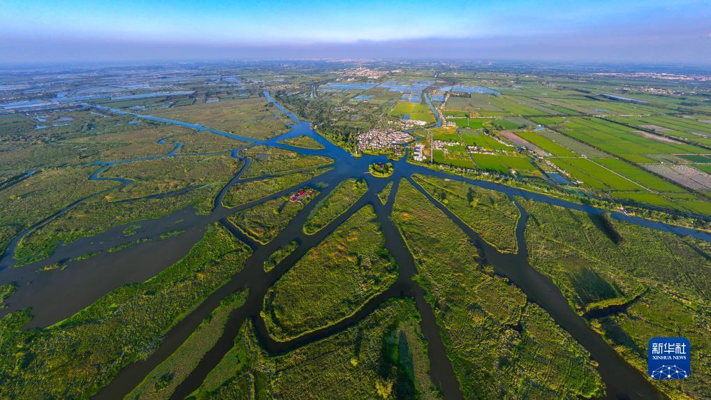9月6日無(wú)人機拍攝的江蘇省鹽城市建湖縣九龍口國家濕地公園(無(wú)人機照片)。