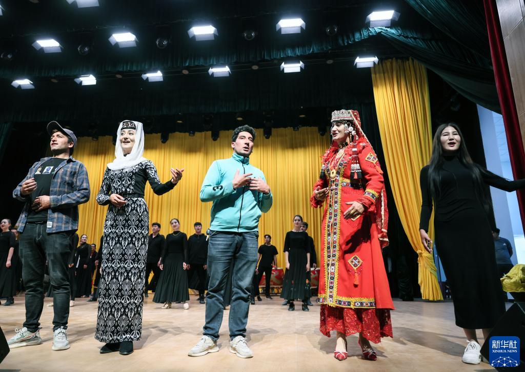 新疆塔縣歌唱演員在排練“帕米爾之聲·2023第二屆國際民族音樂(lè )節”晚會(huì )節目《我和我的祖國》(9月4日攝)。新華社記者 蘭紅光 攝