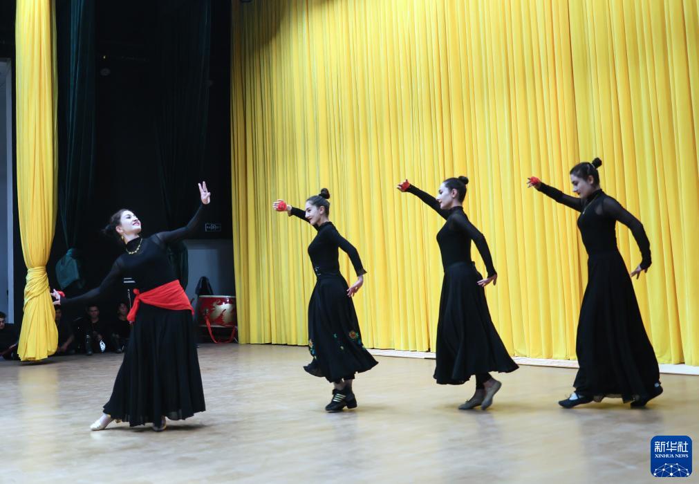 新疆塔縣文工團舞蹈演員在排練《花兒為什么這樣紅》(9月4日攝)。新華社記者 蘭紅光 攝