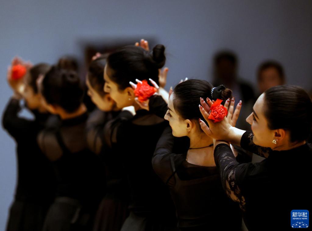 新疆塔縣文工團舞蹈演員在排練《花兒為什么這樣紅》(9月4日攝)。新華社記者 蘭紅光 攝