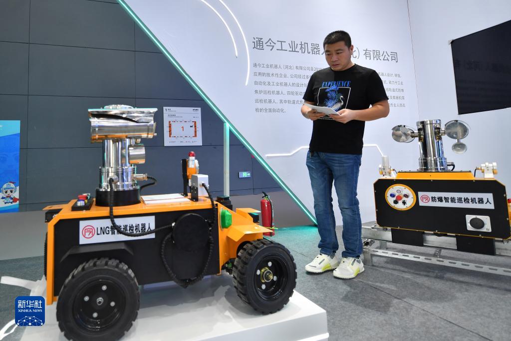 9月7日,參觀(guān)者在數博會(huì )上了解LNG智能巡檢機器人。