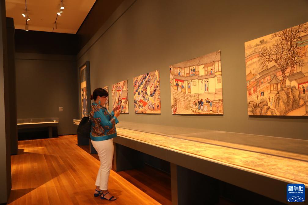 9月6日,在美國俄亥俄州克利夫蘭藝術(shù)博物館,一名女子參觀(guān)“人間天堂:中國江南珍寶展”。