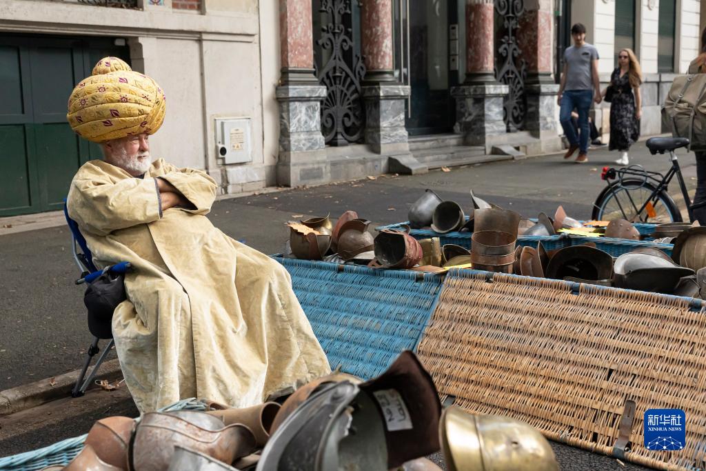 9月2日,在法國北部城市里爾的舊貨市場(chǎng),一名攤主等待顧客。