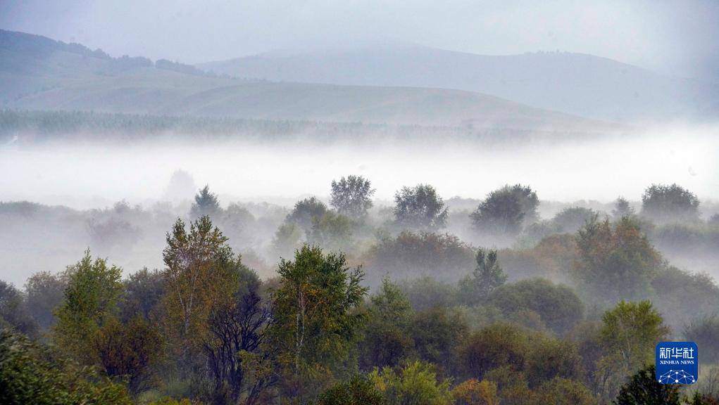當日,位于河北省承德市的賽罕壩國家森林公園霧氣繚繞,秋景迷人。