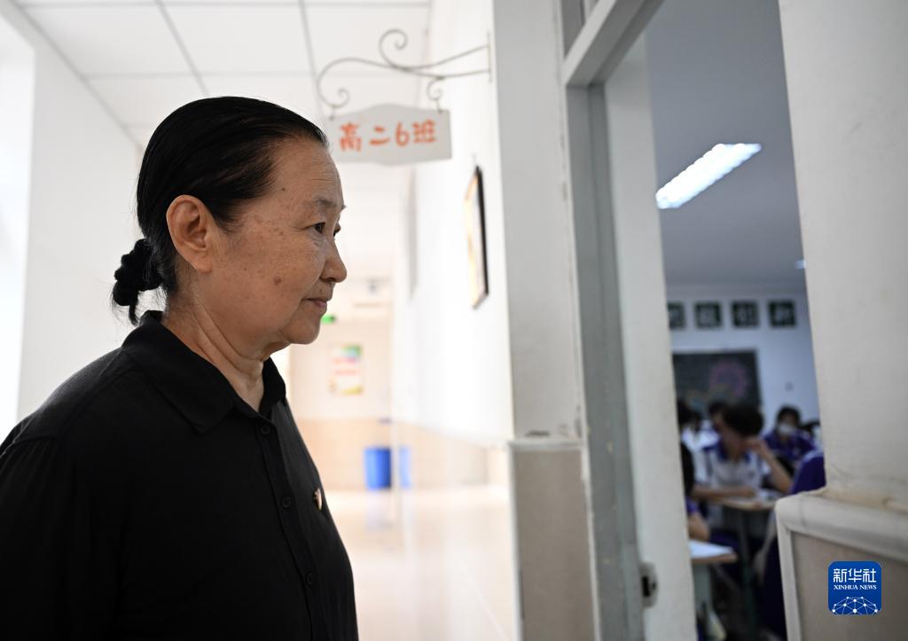 張慧穎在津英中學(xué)的教學(xué)樓內巡查教學(xué)情況(9月8日攝)。