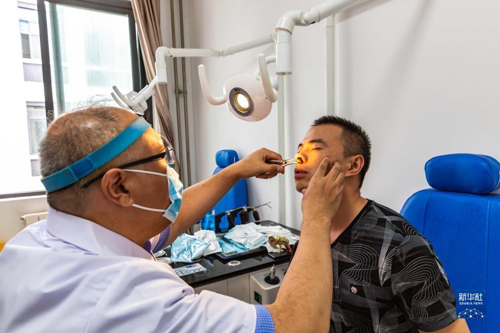 9月9日,首都醫科大學(xué)附屬北京友誼醫院耳鼻咽喉頭頸外科醫生田昊在貴州省安順市中醫院為患者做檢查。