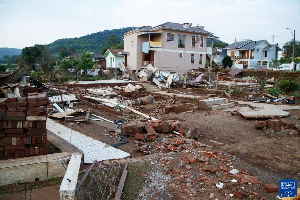 這是9月10日在巴西南里奧格蘭德州科利納斯市拍攝的被洪水摧毀的房屋。