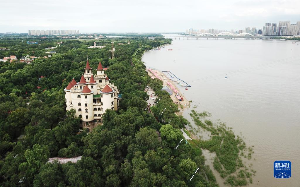 這是8月3日拍攝的太陽(yáng)島景區的一處歐式建筑(無(wú)人機照片)。