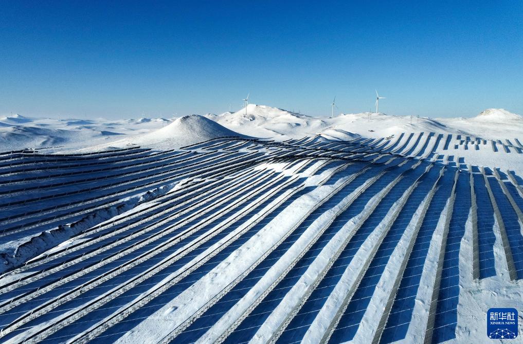 這是在內蒙古霍林郭勒市拍攝的霍林河循環(huán)經(jīng)濟示范工程風(fēng)電光伏基地(2023年2月23日攝,無(wú)人機照片)。