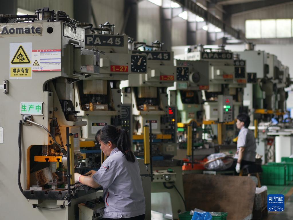 9月12日,工作人員在位于滄州市的河北益民五金制造股份有限公司生產(chǎn)車(chē)間進(jìn)行沖壓作業(yè)。