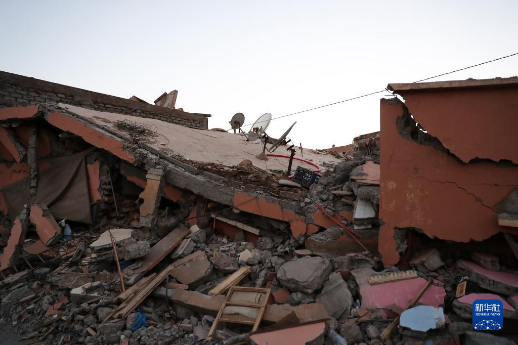 9月12日,在震中區域的摩洛哥豪茲省塔拉特恩雅庫布村,記者拍攝到大量被地震損毀建筑。