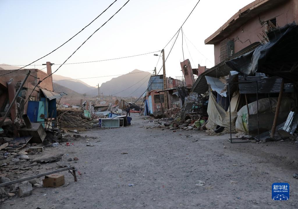 9月12日,在震中區域的摩洛哥豪茲省塔拉特恩雅庫布村,記者拍攝到大量被地震損毀建筑。