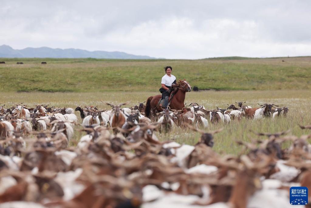 8月17日,在青海省黃南藏族自治州河南蒙古族自治縣多松鄉多松村,扎西曲培在放牧。新華社記者 邢廣利 攝