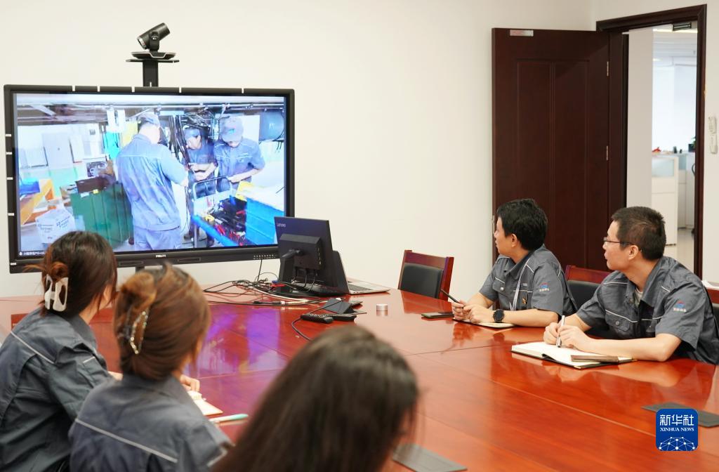 8月10日,京投裝備技術(shù)研究院的工程師視頻連線(xiàn)河北京車(chē)智能制造基地查看地鐵列車(chē)建造現場(chǎng)。