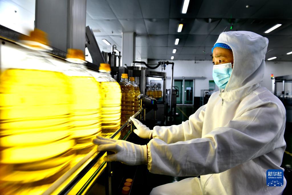 9月13日,在長(cháng)壽花食品股份有限公司玉米油生產(chǎn)線(xiàn),工作人員在流水線(xiàn)上作業(yè)。