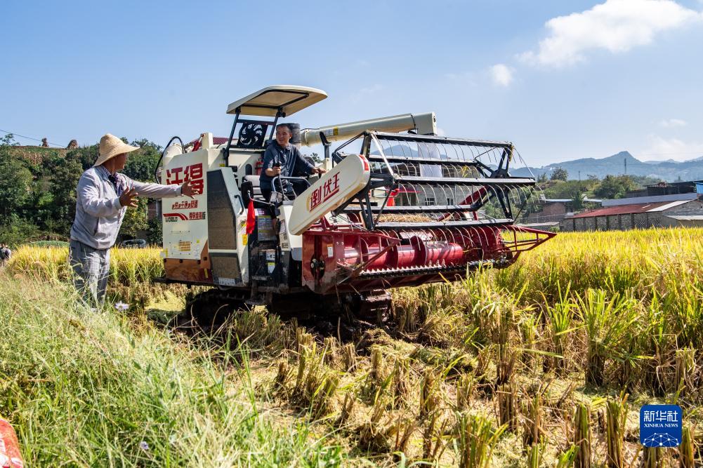 金秋時(shí)節,重慶市巫山縣廟宇鎮稻谷陸續進(jìn)入成熟收割期,稻農們搶抓晴好天氣,收割水稻。