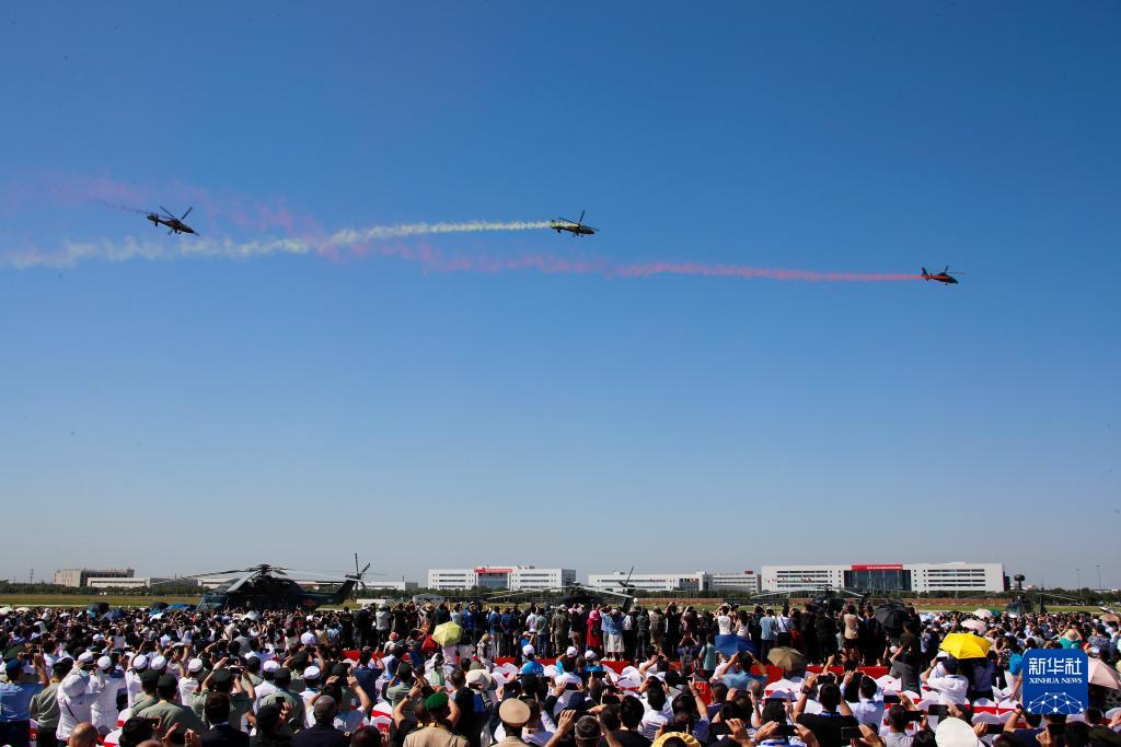 9月14日,在第六屆中國天津國際直升機博覽會(huì )開(kāi)幕式上,陸軍“風(fēng)雷”飛行表演隊直-19武裝直升機進(jìn)行飛行表演。