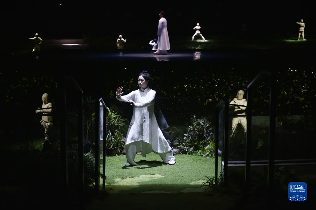 河南省焦作市溫縣陳家溝是太極拳的發(fā)源地。位于陳家溝的太極全域劇場(chǎng)采用實(shí)景與多媒體相結合的方式,圍繞360度旋轉舞臺,打造沉浸式體驗演出《印象·太極》,讓觀(guān)眾在動(dòng)靜之間感受太極文化。