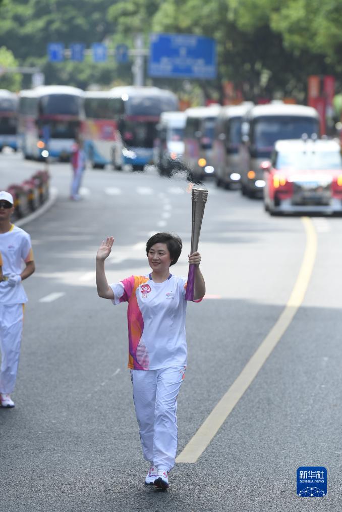 9月15日,火炬手柯茜茜在火炬傳遞中。